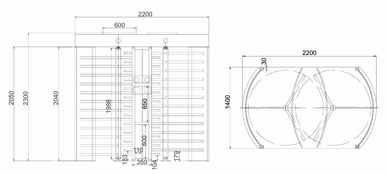 外形尺寸(可定制):长2300×宽1400×高2200mm;