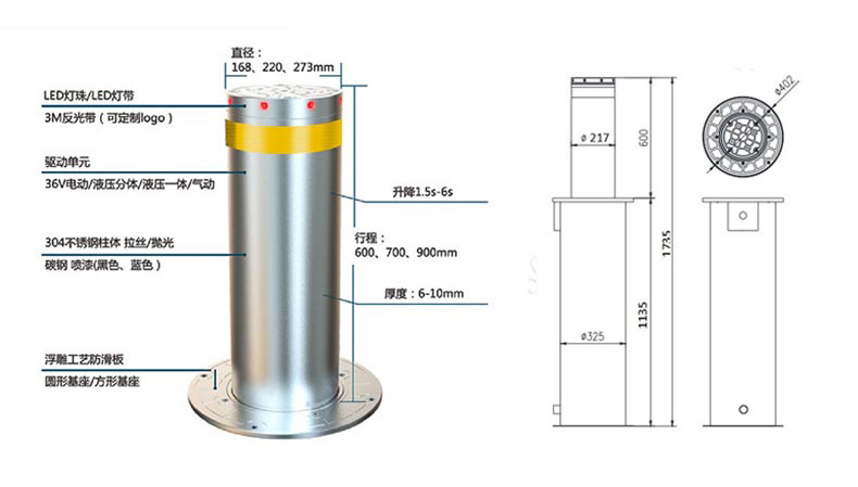 液压式升降地柱,可通过20吨货柜车,可防水/防潮/防尘。