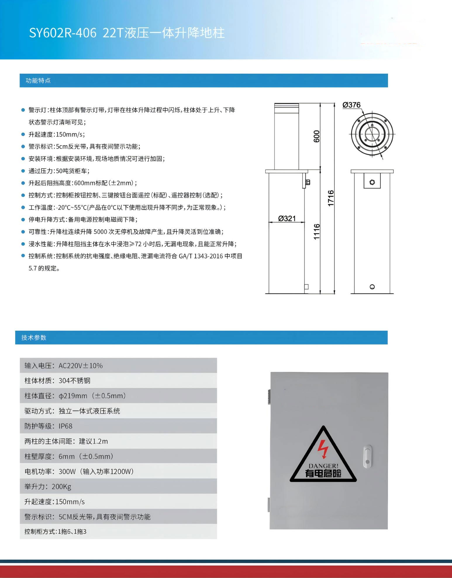 ● 具有电磁阀接口,停电时可使升降柱下降;