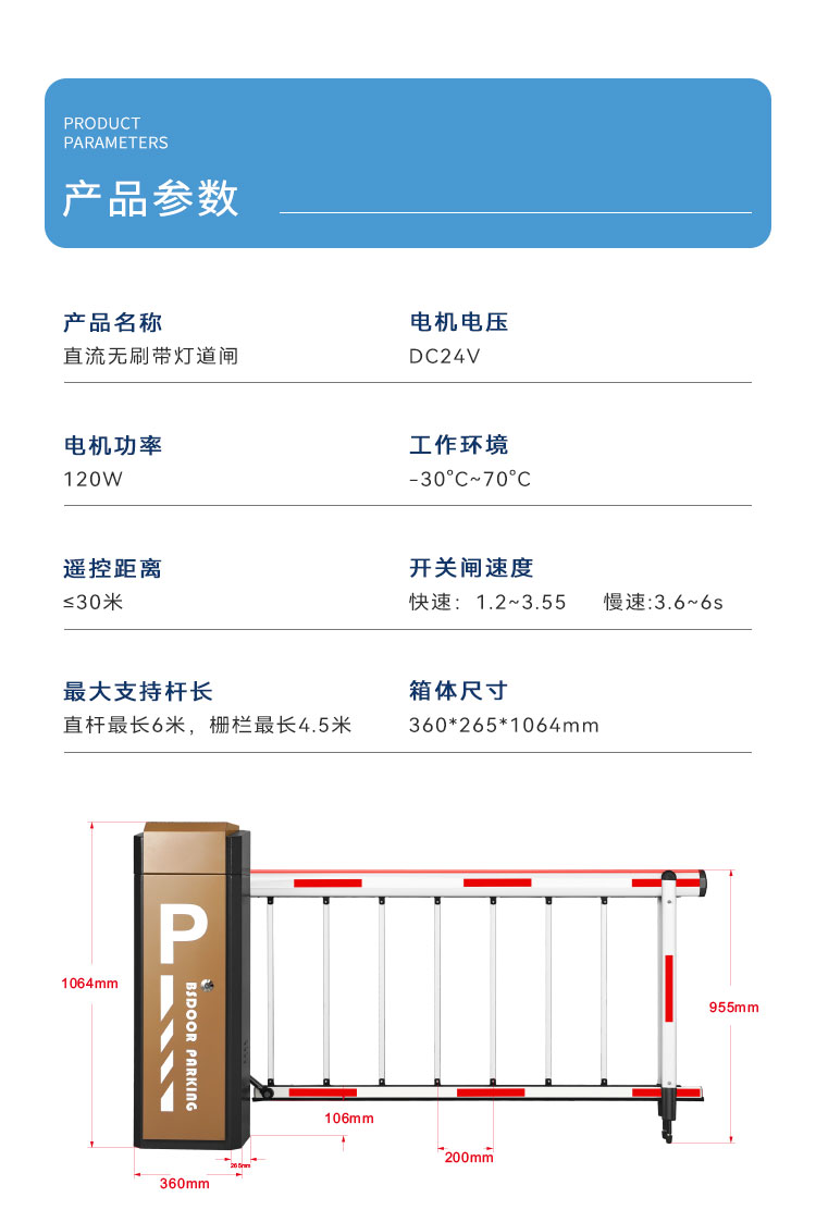 24V人体安全电压,无漏电风险 选配蓄电池支持断电自动起杆功能