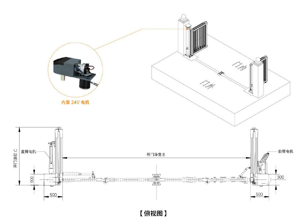 1.两边立柱按图示尺寸开挖坑洞,深度最好是到实底地面,两柱间挖开300X300,埋电缆PVC管,按图示套入电缆线,两端相互打节,并封堵PVC端口;
