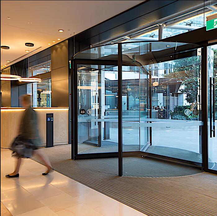 超大型全玻璃旋转门可以显著提升建筑入口附近的风环境和节能效果。可提供3页或4页的旋转门翼选择,带来华贵夺目的入口效果。