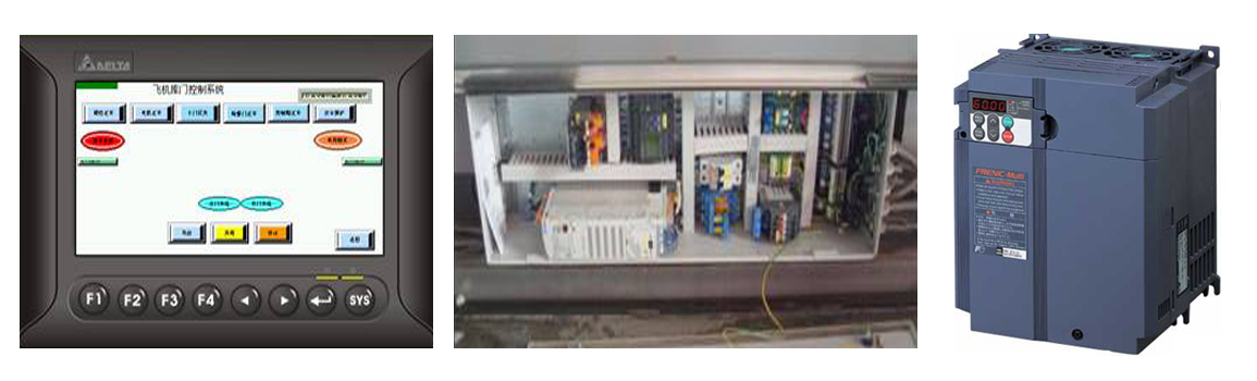 机库门自动控制系统操作监视采用集中控制柜,门体的所有状态在触摸屏上以条状闪亮形式显示。